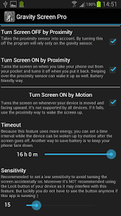 - Turn Screen Off by Proximity: If the device is pointing downward it takes the proximity sensor into account.. By turning this off the program will rely only on the gravity sensor.