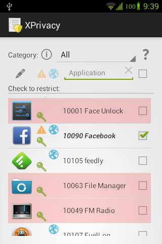 Free XPrivacy can restrict the categories of data an application can access. This is done by feeding an application with no or fake data. There are several data categories which can be restricted, for example contacts or location. For example, if you restrict access to contacts for an application, this will result in sending an empty contact list to the application, when it requests access to your contacts. Similarly, restricting an application's access to your location will result in a random or set location being sent to the application.